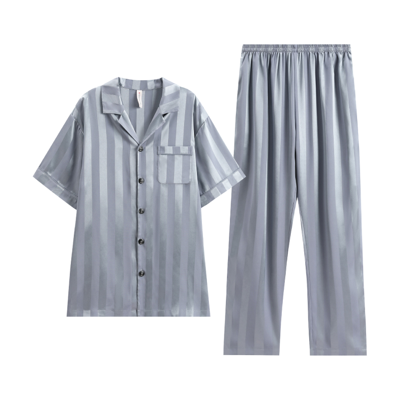 开衫 凉感冰丝短袖 睡衣薄款 休闲大码 芬腾男士 仿真丝家居服套装 夏季