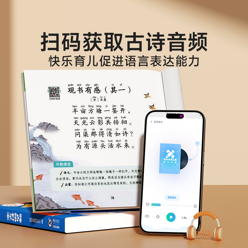 时光学念古诗做早教幼小衔接bi备古诗幼儿早教儿童古诗书123首唐诗古诗词彩图注音版 6岁益智启蒙书籍有声读物古诗绘本 幼儿园bi背3