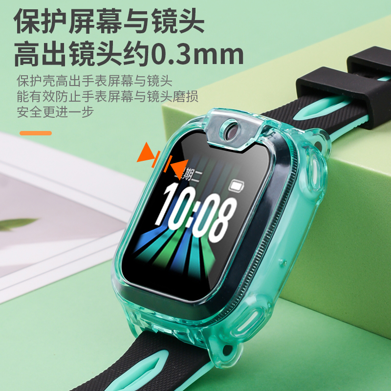 适用小天才手表D2 Q2A透明印花tpu防摔壳护眼贴膜w1923ac儿童电话表带Y8配件 Q1A保护套D2A