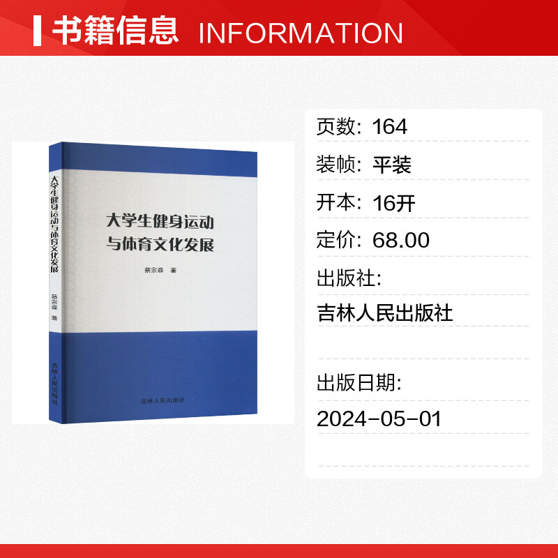 育儿其他文教 著 新华书店正版 图书籍 社 大学生健身运动与体育文化发展 吉林人民出版 蔡宗森