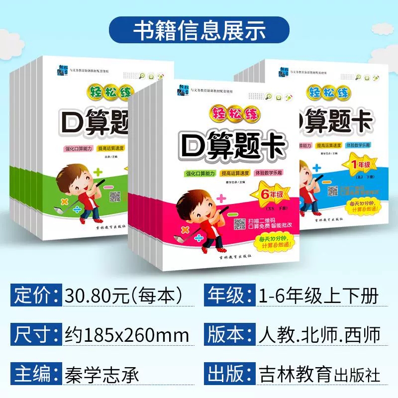 BS小学123456年级上下册数学同步强化口算能力提高运算速度 XS北师版 2025轻松练口算题卡一二三四五六年级上册下册人教版 RJ西师版