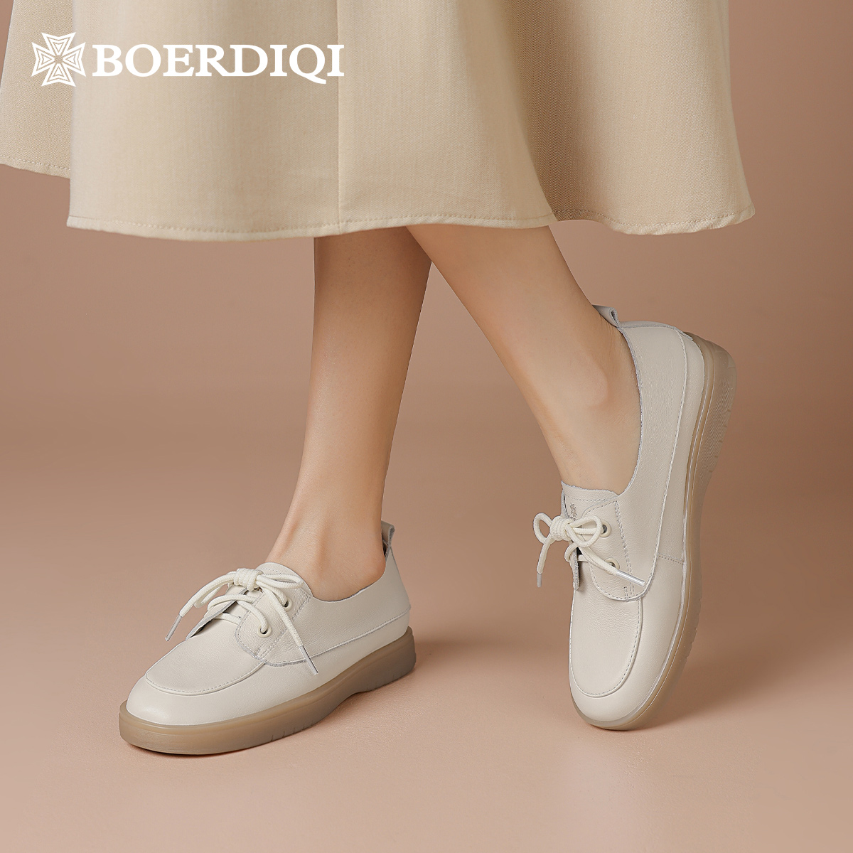 运动休闲牛皮板鞋 真皮软底小白鞋 平底系带皮鞋 新款 女 女2025秋季