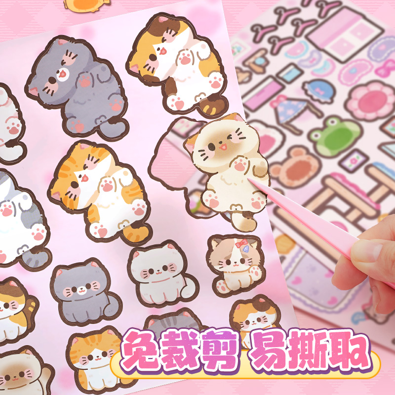饭饭猫咪安静书新款 贴纸书玩具手工diy卡通贴画6 女孩子免裁剪换装