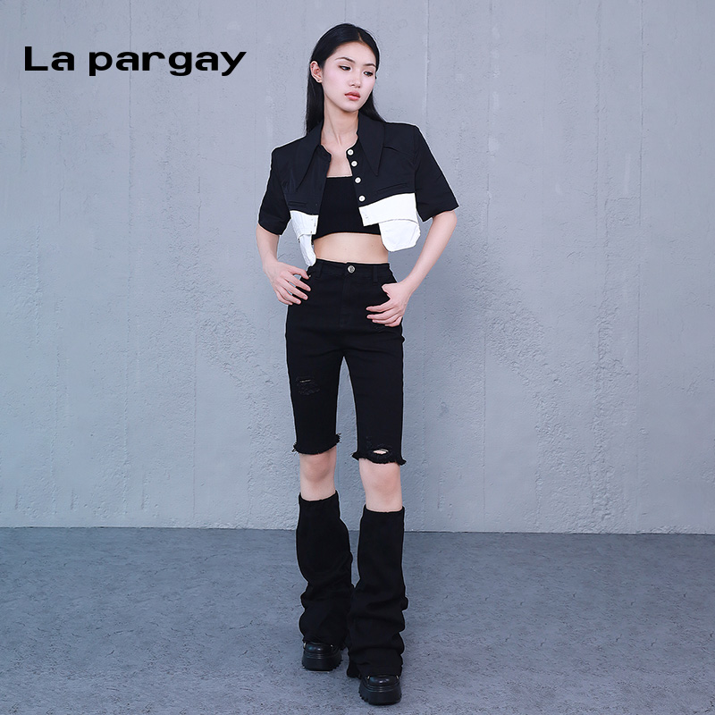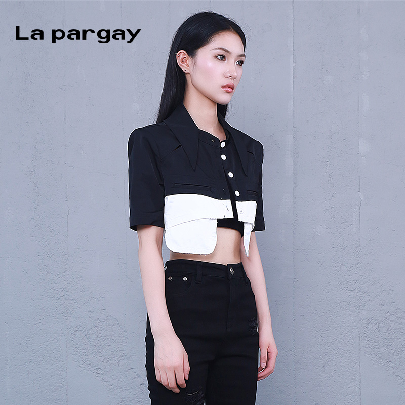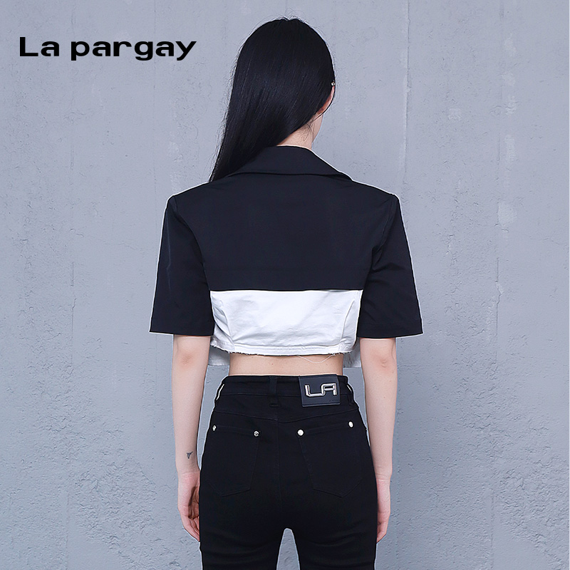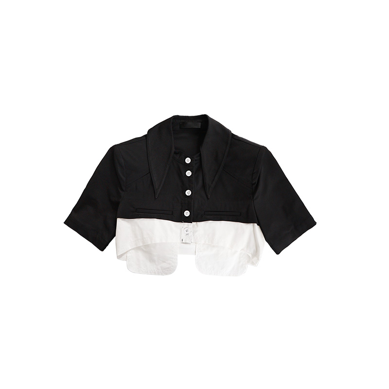 新款 外套2025夏季 女式 黑色个性 休闲上衣 纳帕佳短袖 时尚 设计感短款