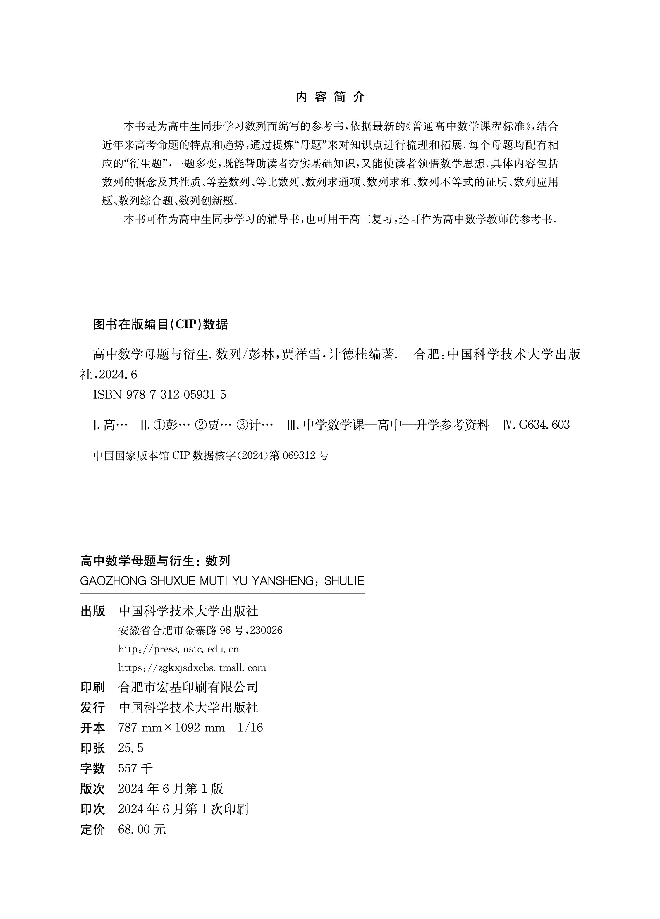社 中国科学技术大学出版 高中数学母题与衍生:数列 高一二三通用彭林贾祥雪计德桂高中数学联赛竞赛培优高考数学几何导数专项复习