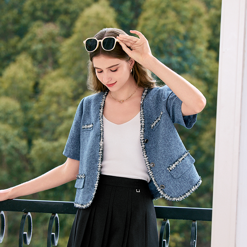 Lilbetter原牛短宽版 外套 哥萨克牛仔夹克2025秋明线设计翻领工装