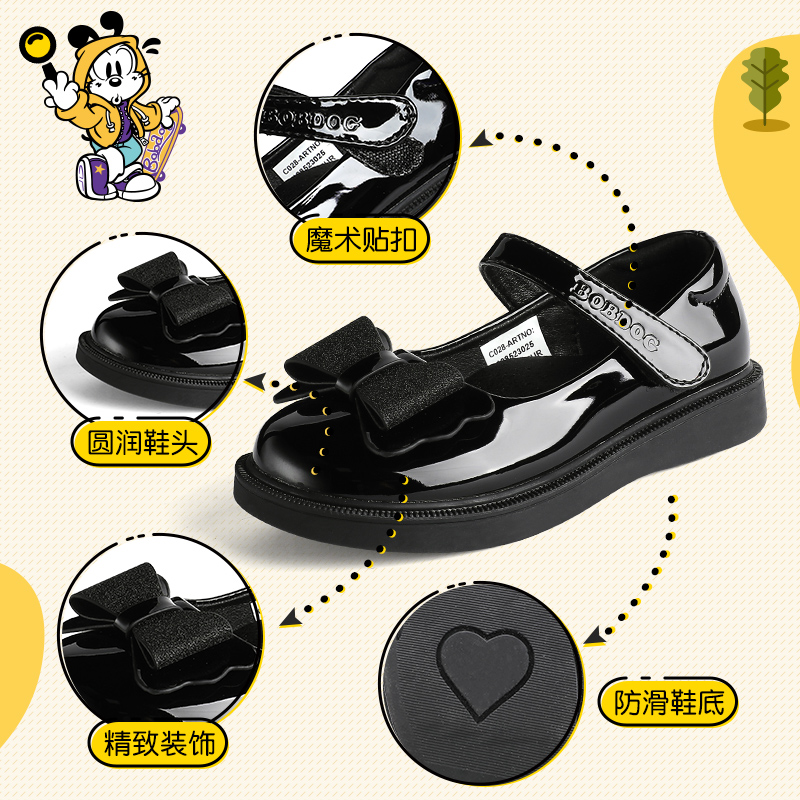 春秋款 时尚 舒适四季 巴布豆女童黑色皮鞋 儿童鞋 2025新款 鞋 子 演出鞋