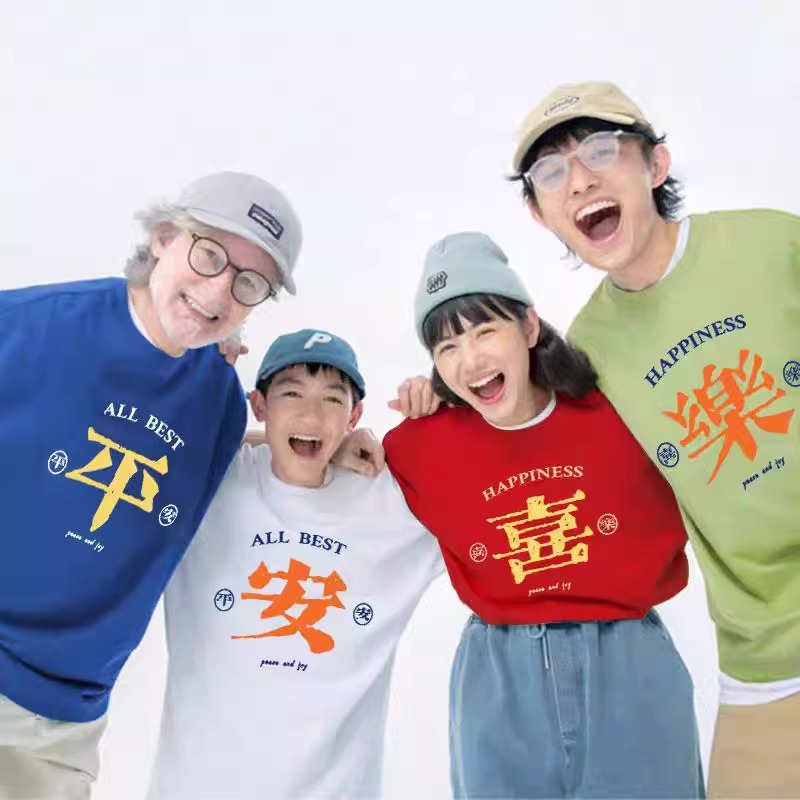 定制 diy纯棉短袖 平安喜乐亲子装 T恤兄弟姐妹新年聚会全家福家庭装