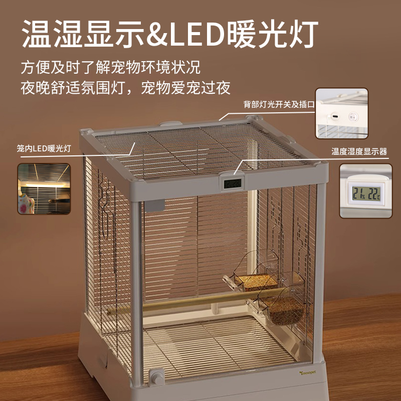 优嗖430笼蜜袋鼯饲养笼304不锈钢鹦鹉笼氛围灯全景透明玻璃加密笼