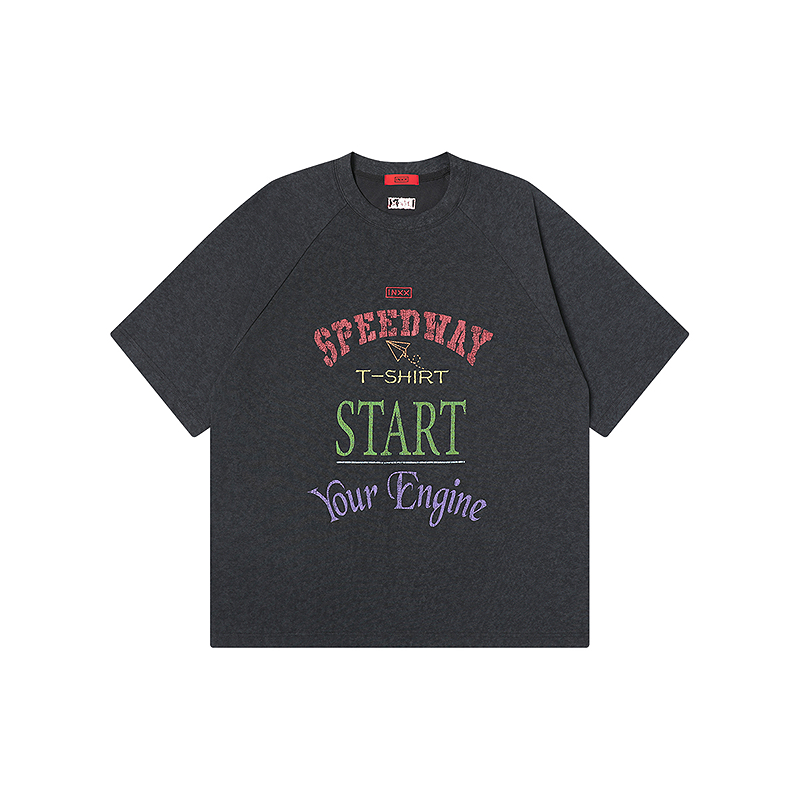 美式 彩虹色皲裂纹印花短袖 复古风蜡染圆领T恤男女同款 INXX