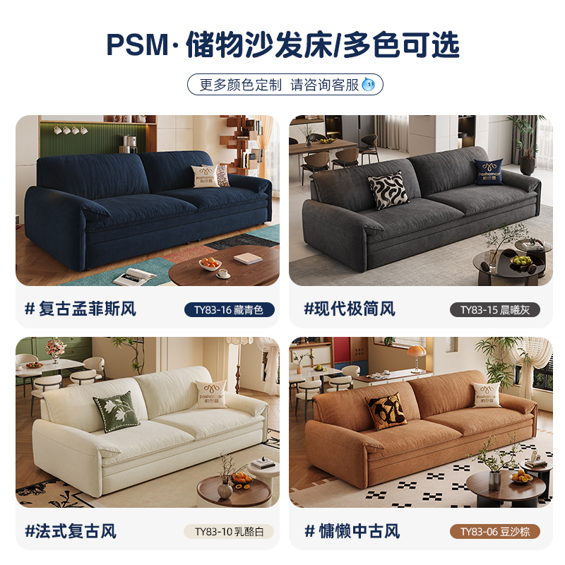 帕沙曼可拆洗沙发床单双人两用床小户型折叠云朵沄巢沙发简约书房