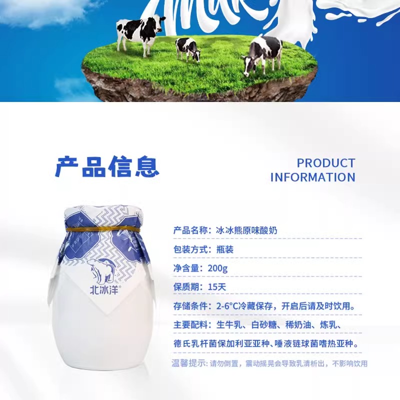 北冰洋冰冰熊原味酸奶老北京原味瓷罐酸牛奶200g桔子风味酸奶180g