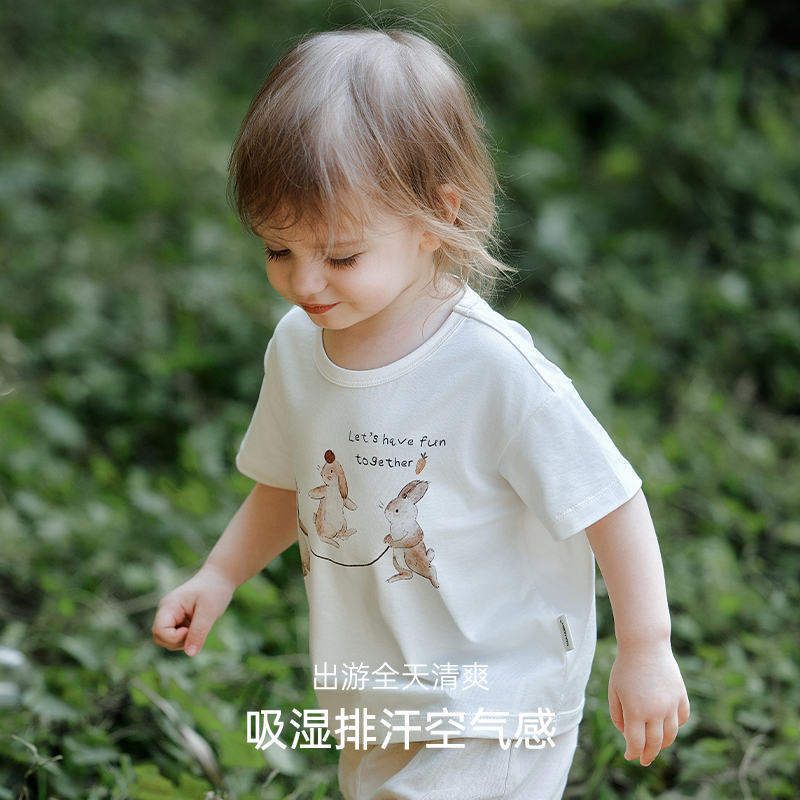 棉t恤儿童宝宝圆领上衣2025百搭夏装 男童女童短袖 Family童装 Oak
