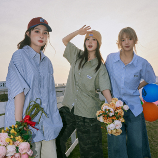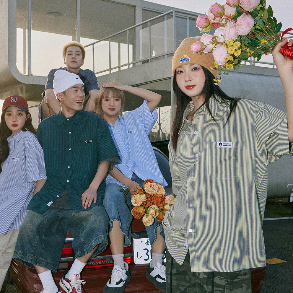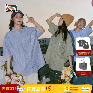 宽松情侣款 lemanism日系竖条纹短袖 2025新款 夏季 衬衣寸衣外套 衬衫