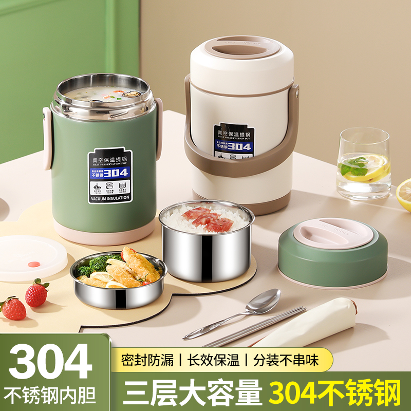 简约保温饭盒304真空饭盒爆款 双层三层保温饭桶大人饭盒带盖防溢