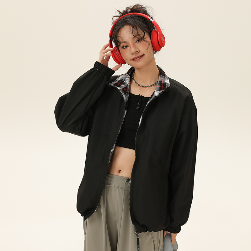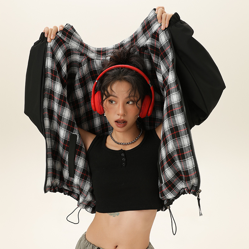上衣男女 复古翻领夹克格子拼接短外套潮休闲工装 Achock官方店