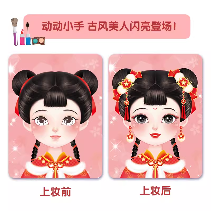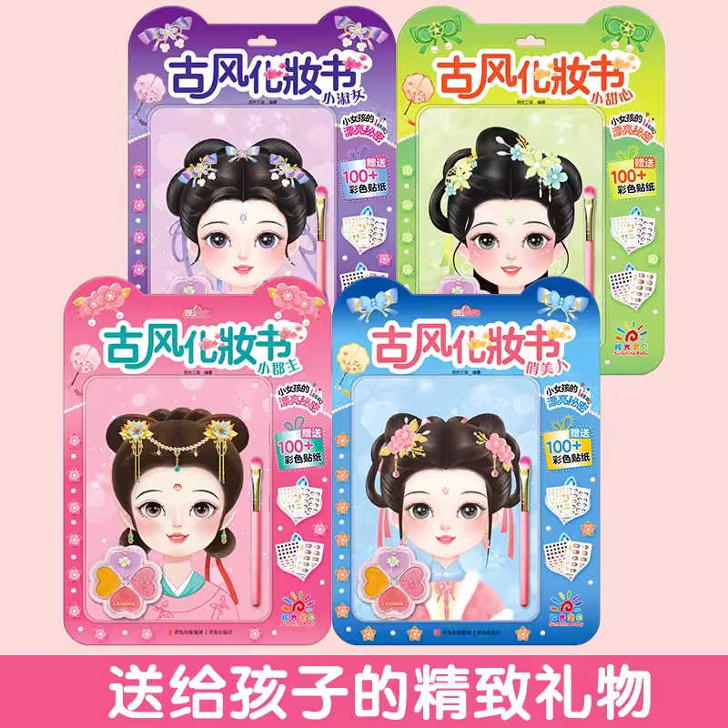 赠彩妆盘化妆刷 推荐 公主换装 俏美人小甜心小淑女俏美人正版 贴纸书女孩儿童益智玩具3到6岁美丽少女化妆本贴贴画 全4册古风化妆书