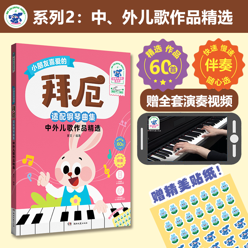 中外儿歌作品精选 配套伴奏音频 彩色大音符系列 高清演奏示范 趣味奖励贴纸 黄文 拜厄适配钢琴曲集