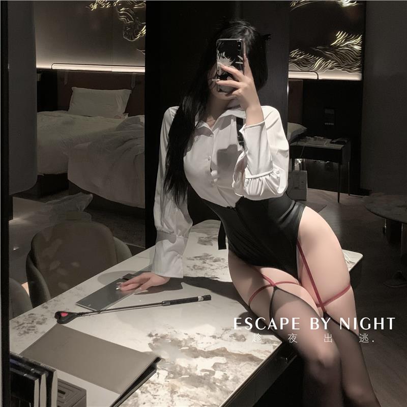 qqny 职业制服小个子连体套装 趁夜出逃 性感辣妹漆皮修身 私人秘书