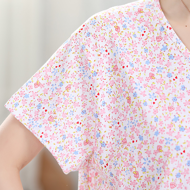 夏空调 T老太太睡衣女宽松家居服全棉薄款 中老年纯棉碎花开衫 短袖