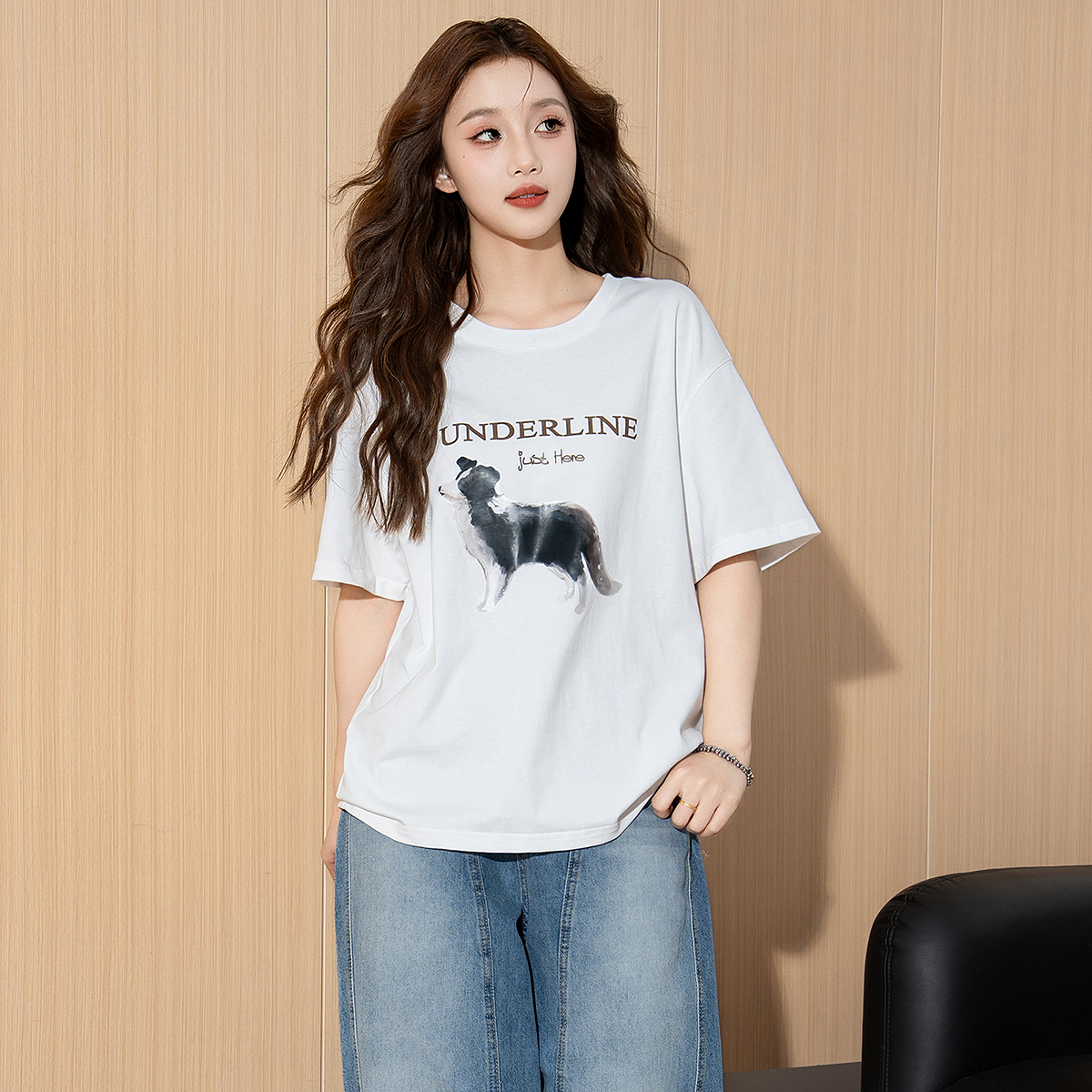 上衣女2025新款 白色t恤女装 秋季 简约修身 圆领内搭打底衫 三福长袖