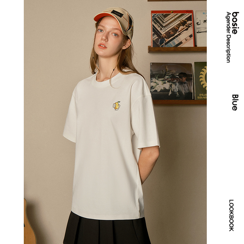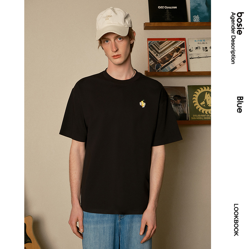 T恤男情侣运动休闲体恤 童趣柠檬印花短袖 bosie伯喜2025年夏季 新款