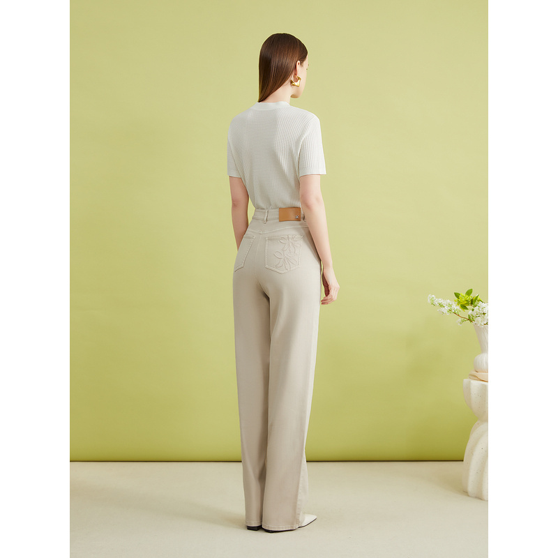 诗凡黎经典 25秋女伊芙丽outlets店 水洗磨毛直筒高腰显瘦牛仔长裤