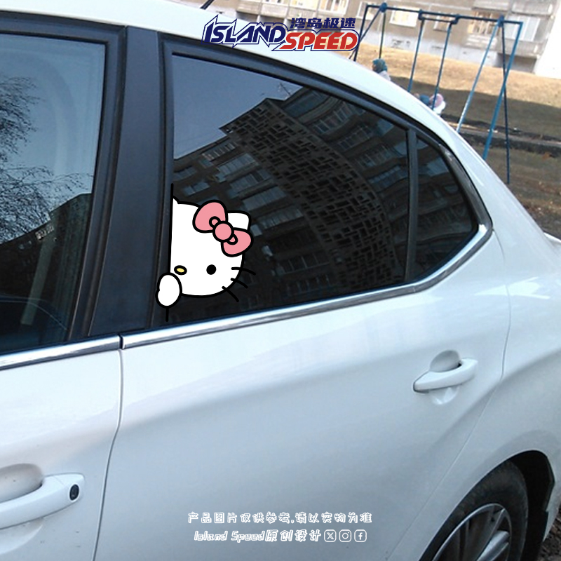 可爱偷看探头凯蒂猫HelloKitty车贴个性 创意车挡风玻璃贴画