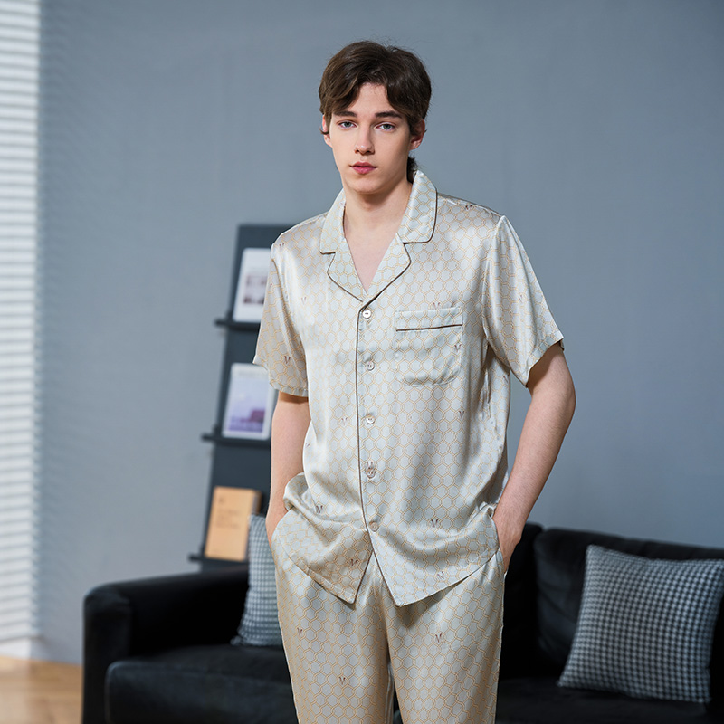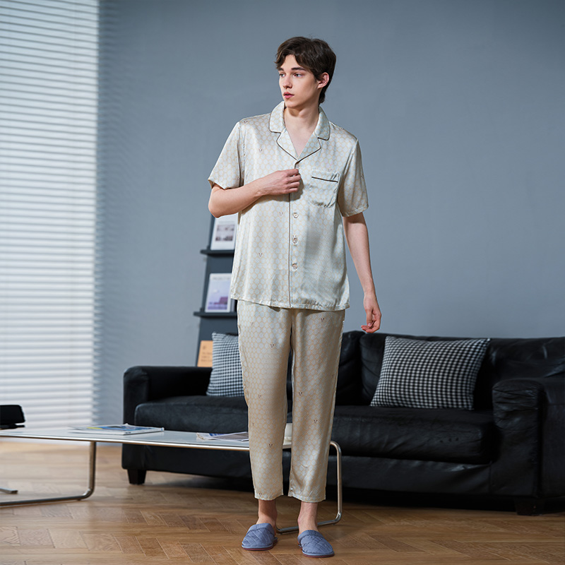 桑蚕丝19姆米重磅丝绸休闲家居服夏 男士 美标6A级短袖 真丝睡衣套装