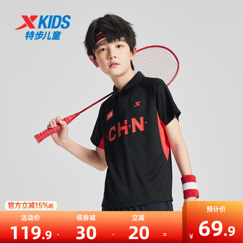 款 特步童装 2025夏季 POLO衫 儿童潮酷短T大童运动上衣 男童国潮短袖