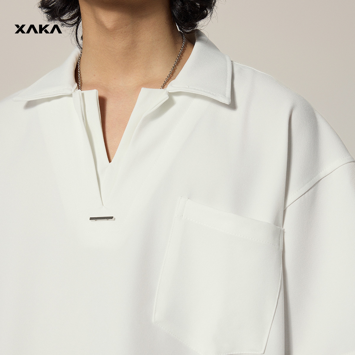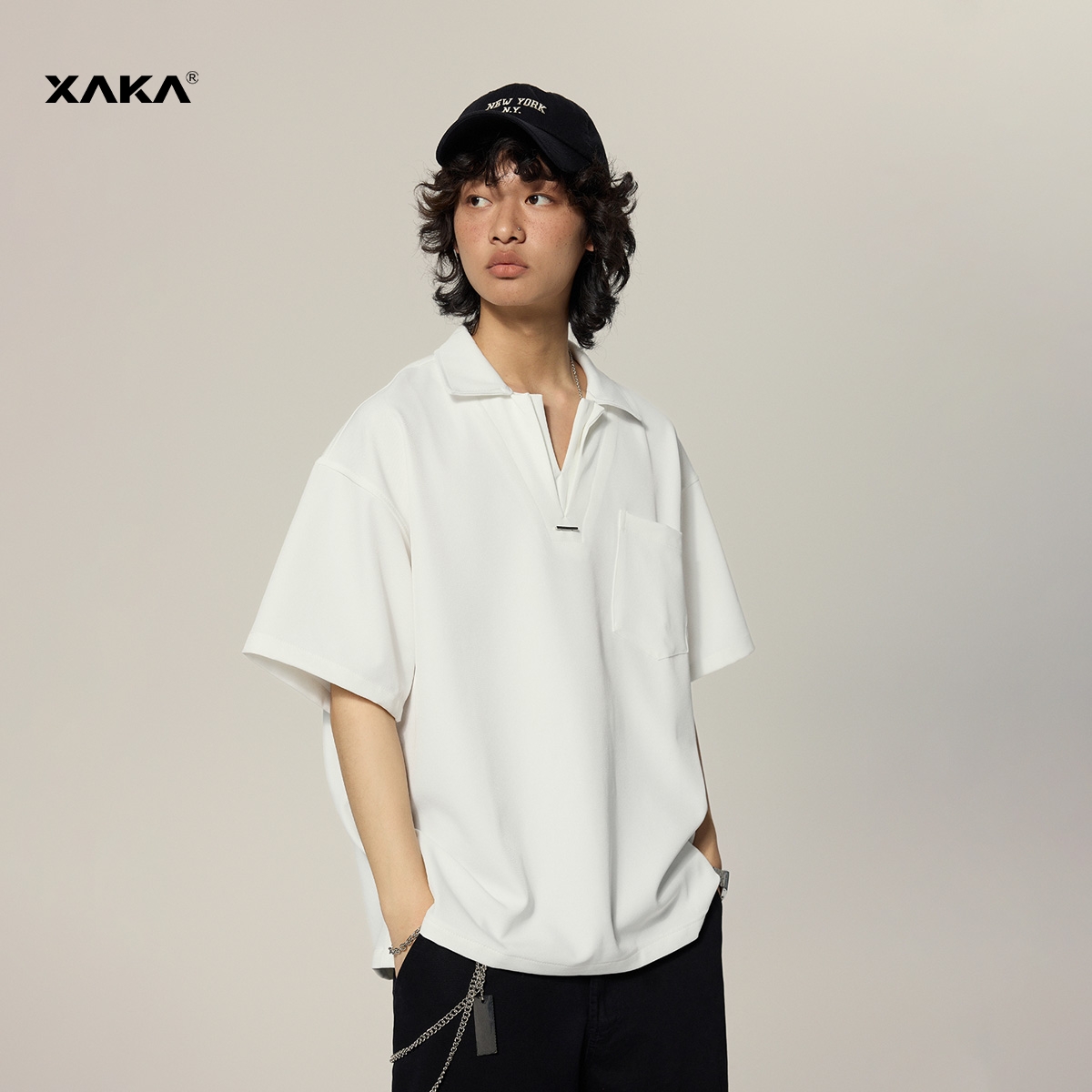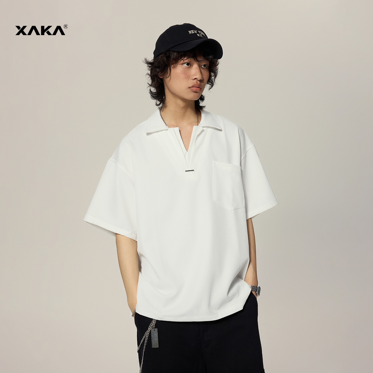 痞帅2025设计感短袖 男夏季 t恤上衣潮 休闲假两件v领polo衫 XAKA美式