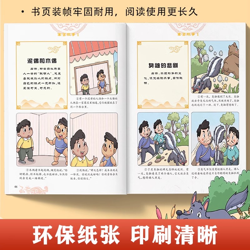 正版 12岁儿童经典 现货 成语故事寓言故事三十六计孙子兵法全四册彩图注音大开本6 成语寓言故事四册注音课外书籍r 漫画版