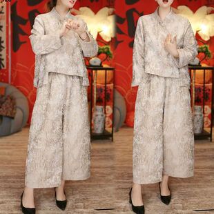 新款 两件套装 新中式 高腰阔腿裤 国风上衣女时尚 高级气质欧洲站春季