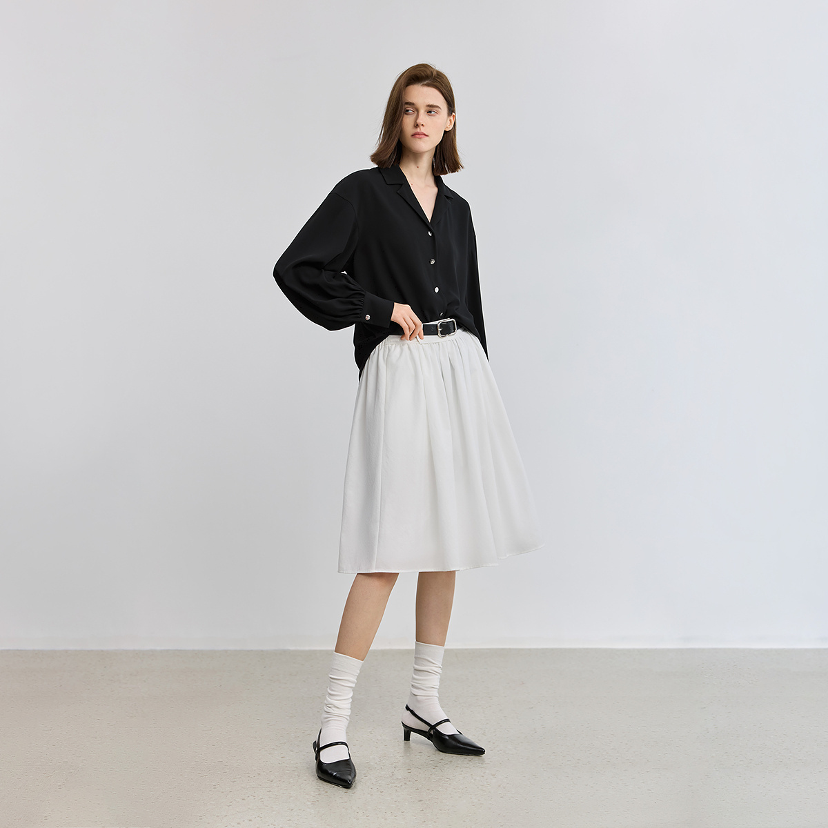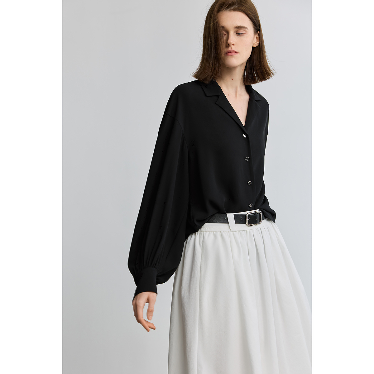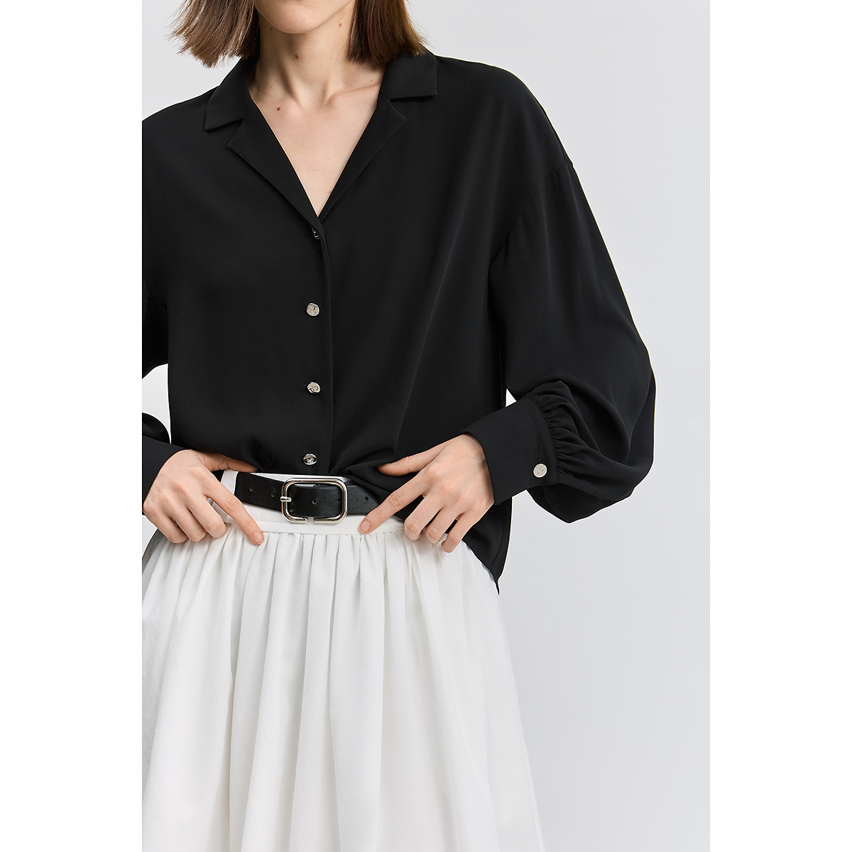 职业通勤宽松雪纺衬衫 LILY2025新款 黑色古巴领高级法式 经典 女装