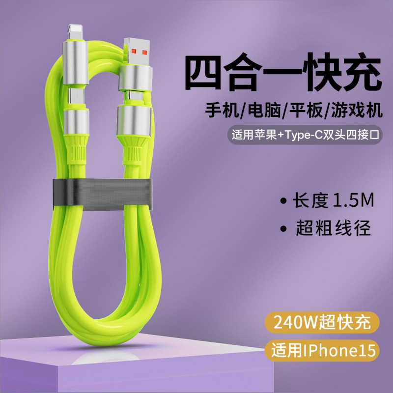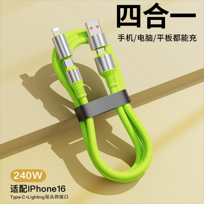 配耐四合一240W超级快充手机数据线双头Type c接口充电线器适用苹果小米vivo华为安卓平板电脑车载多功能usb
