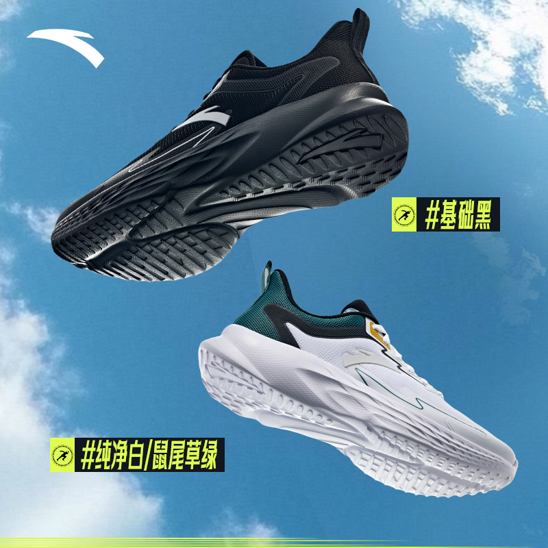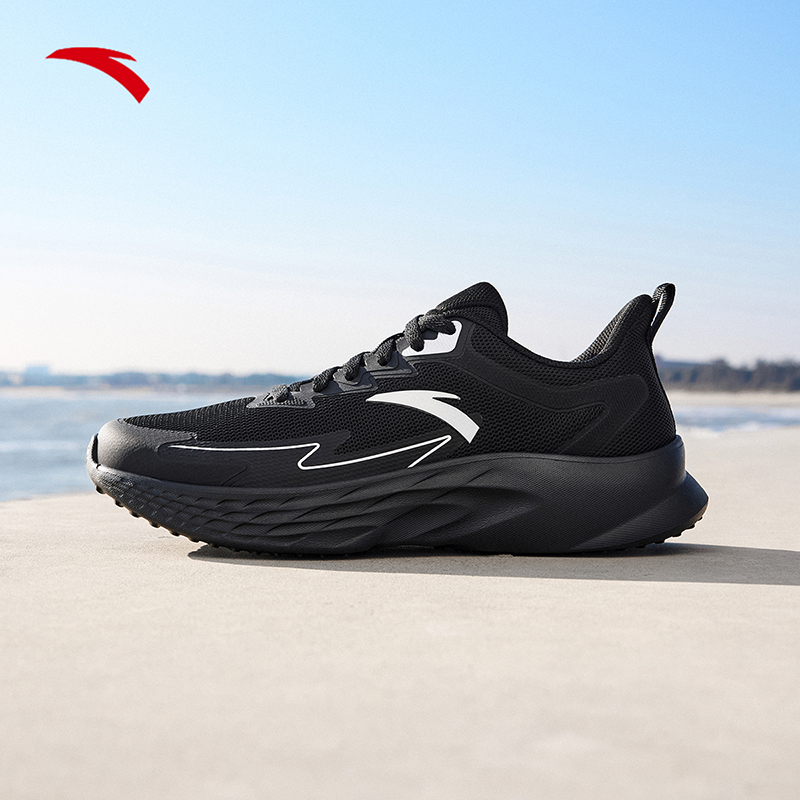 减震防滑耐磨运动鞋 安踏官方正品 新款 男秋季 子 舒适透气黑色跑步鞋
