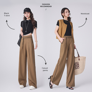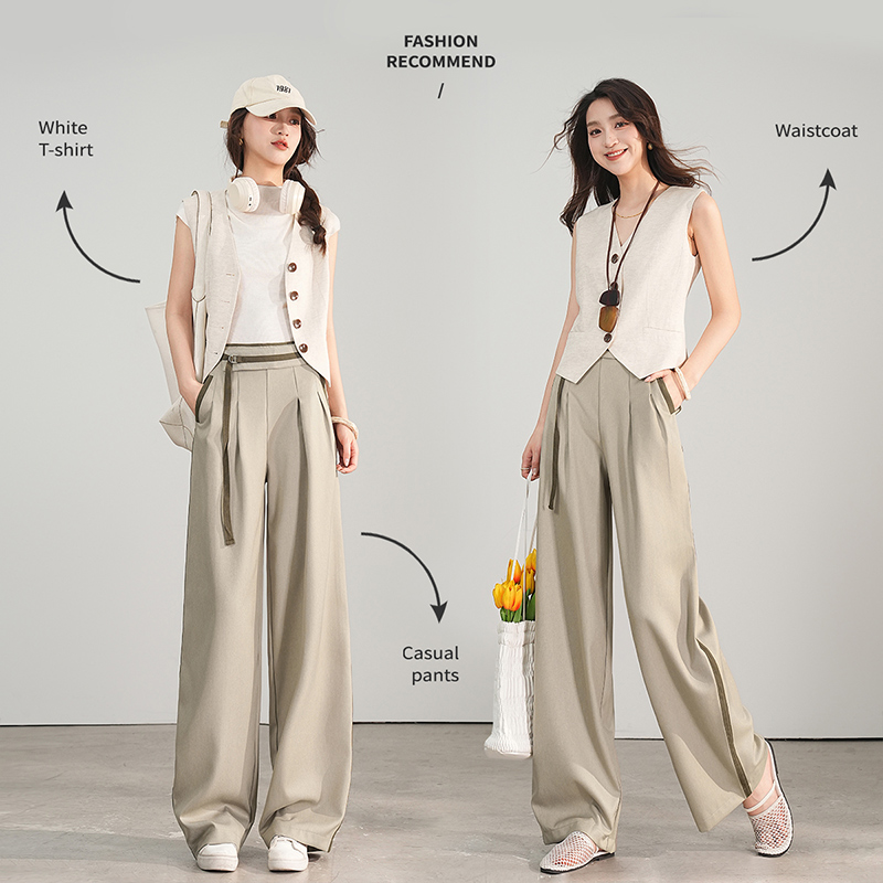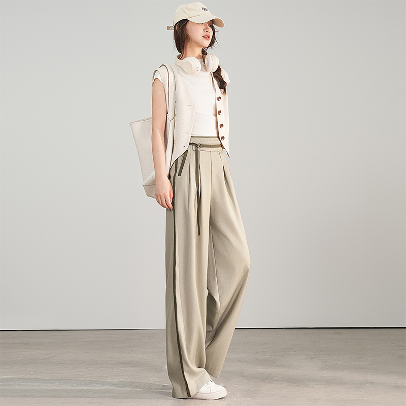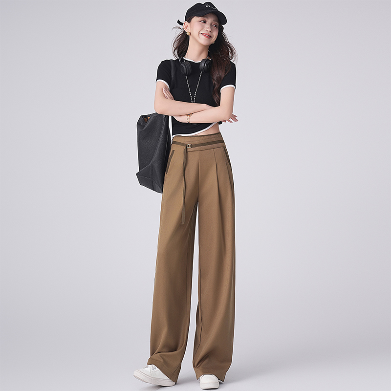 百搭阔腿拖地裤 休闲裤 春款 饰撞色高腰女式 腰带装 白鹿语时尚
