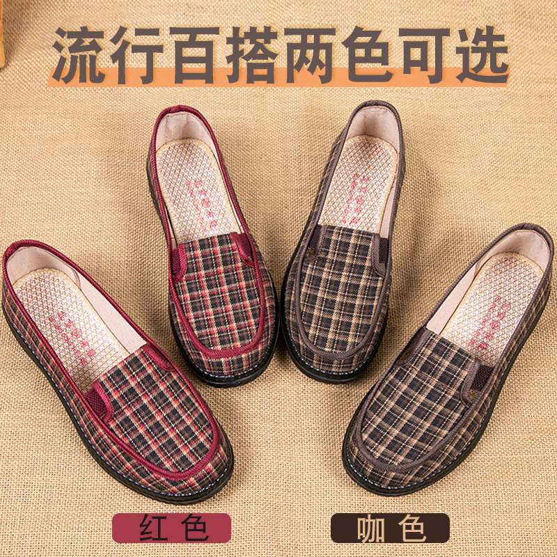 一脚蹬平底休闲软底老人鞋 百搭中老年妈妈鞋 女春夏新款 老北京布鞋