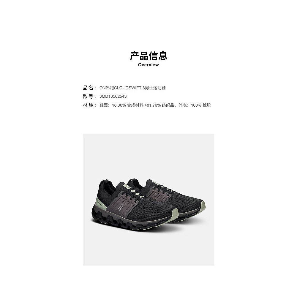 新款 运动舒适跑鞋 3MD10562543 3男士 香港直邮ON昂跑Cloudswift