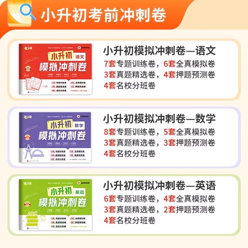 满分星小学六年级小升初试卷语文数学英语模拟冲刺卷全国通用版 必刷题毕业复习期末真题测试卷升学考试押题卷名校分班卷同步练习册