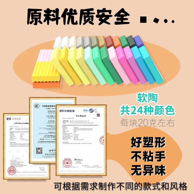 软陶泥小学生专用陶土手工diy陶艺儿童初中幼儿园美术黄泥塑粘土.