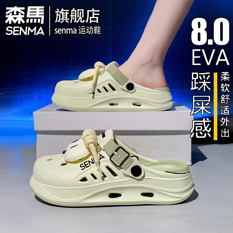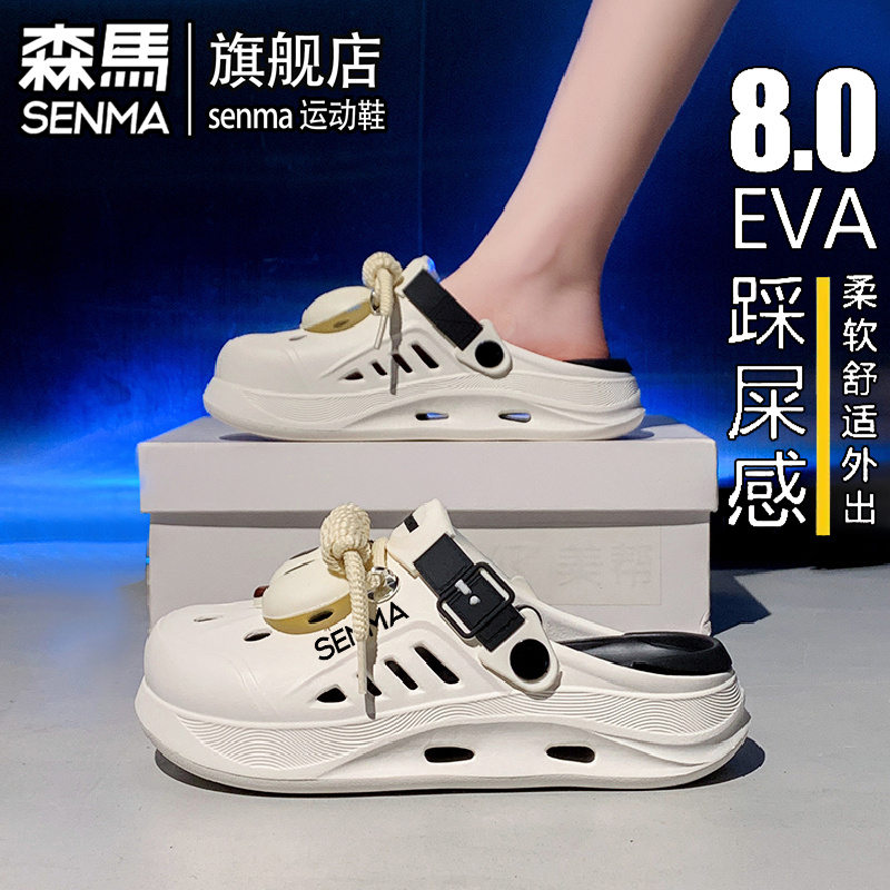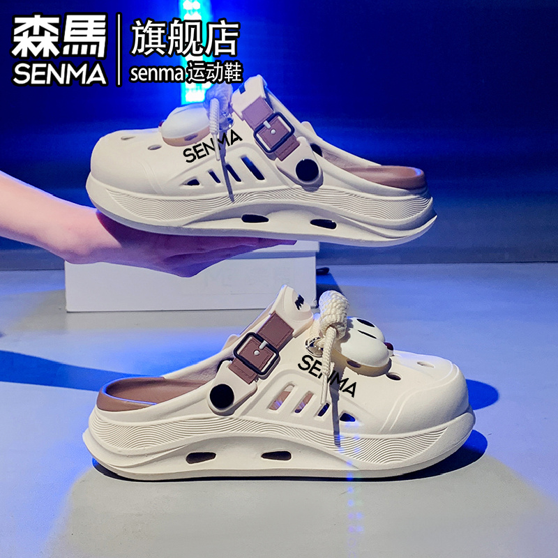 踩屎感户外沙滩凉鞋 森马洞洞鞋 外穿防滑厚底增高包头拖鞋 夏季 女款