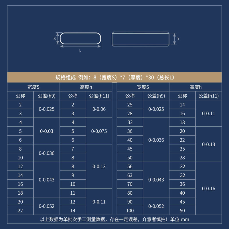 304不锈钢平键销圆角A型方键销键条GB1096A形方料M3M4M6M8M10M12