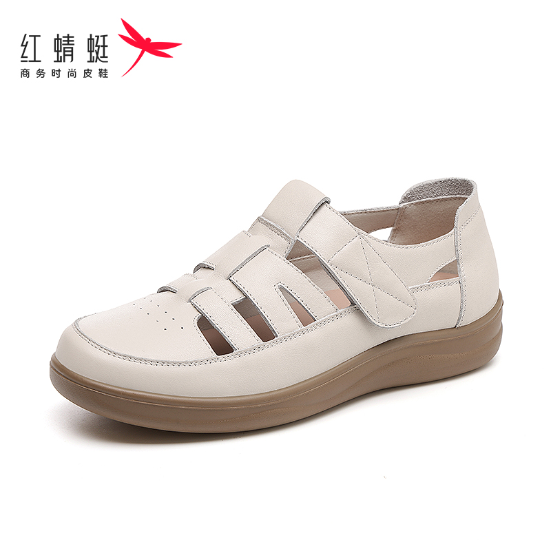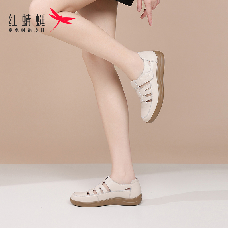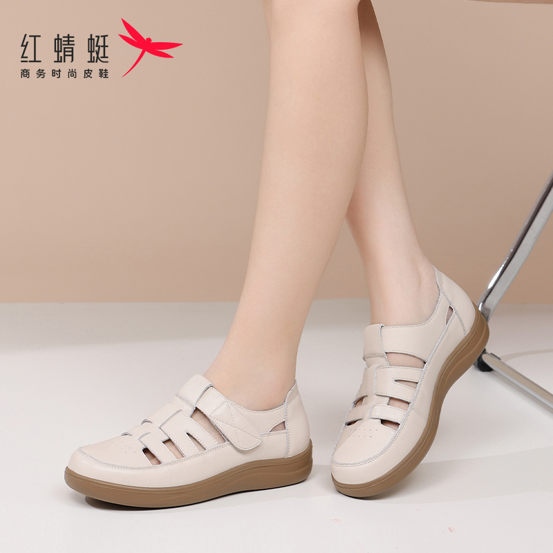 镂空猪笼鞋 红蜻蜓夏季 外穿真皮妈妈洞洞鞋 女2025新款 女士罗马凉鞋