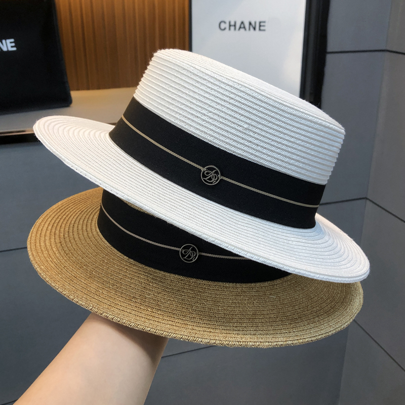 礼帽防晒太阳帽 出游海边沙滩遮阳帽子2025新款 法式 平顶草帽女夏季