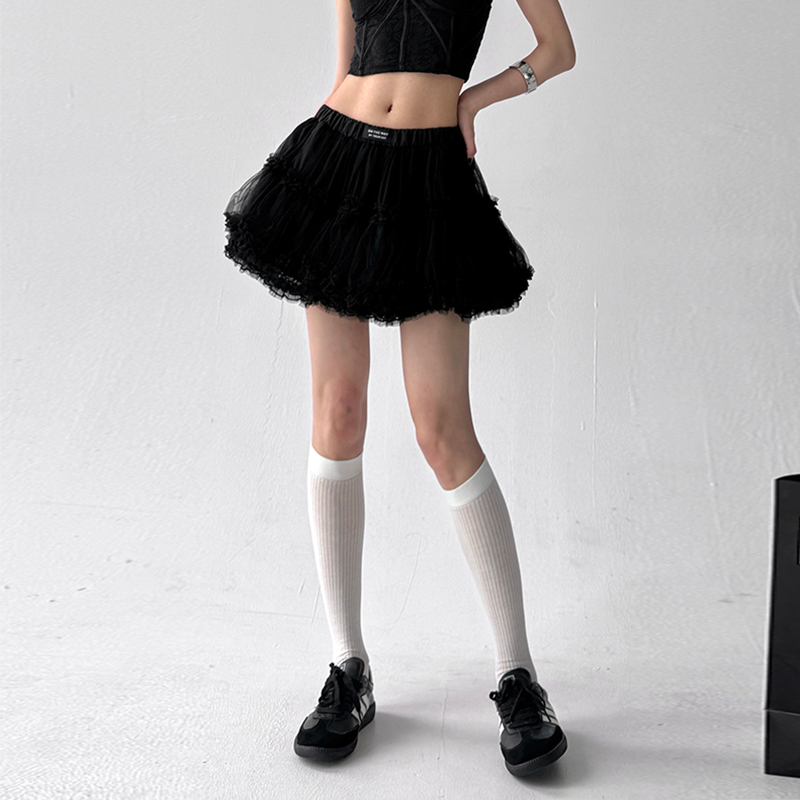 高腰百褶裙女a字显瘦秋冬弹力松紧短裙黑小伞裙设计感字母半身裙