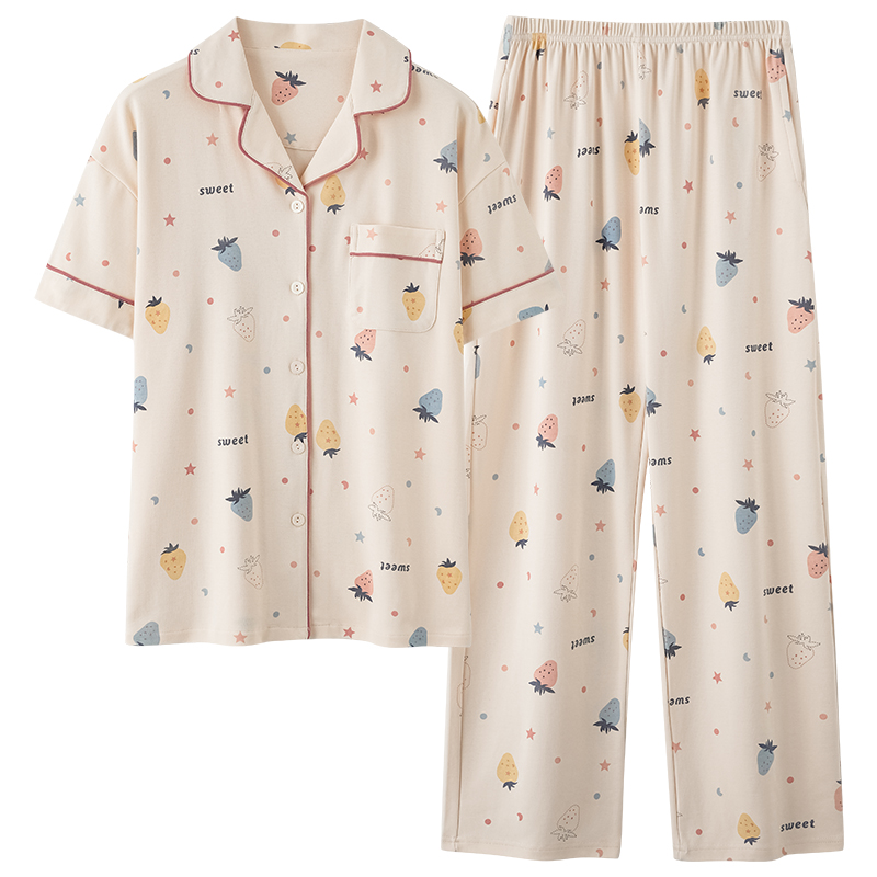 可爱无领全棉柔软家居服套装 红豆居家柔柔棉春秋季 纯棉睡衣女长袖