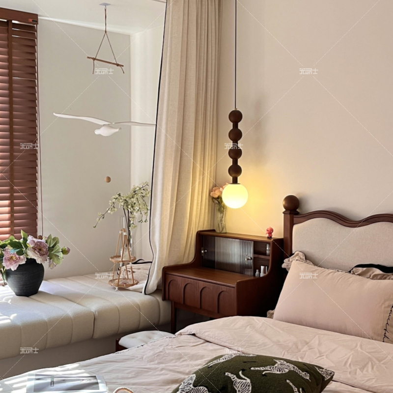 可升降法式 复古玄关书房吊线灯 中古主卧室床头小吊灯葫芦实木美式