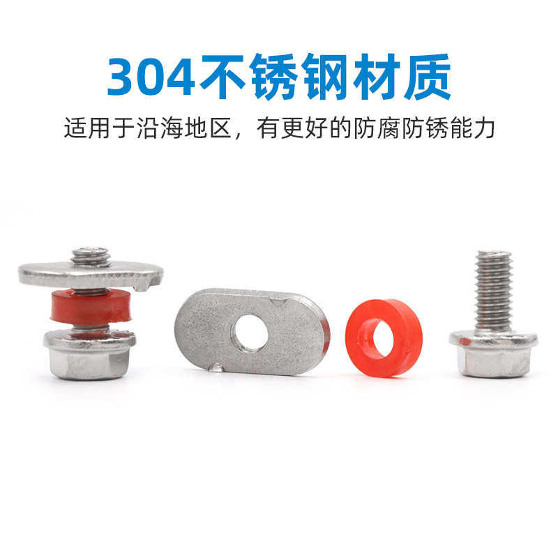 4C铝合金走线架专用螺丝椭圆螺母胶垫组合工业铝型材腰型长方形滑块内置式 连接固定锁母M6法兰十字螺杆配套