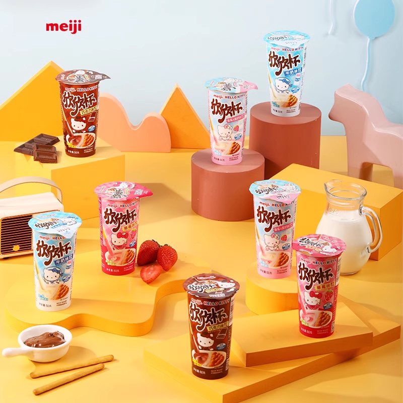 明治欣欣杯6杯 整板蘸酱手指饼干巧克力果酱酱饼干条休闲儿童零食